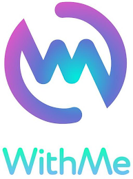 - DM0000: The mark consists of a partial circular design connected with an oscillating line appearing in gradient light blue in the center to blue and purple as it extends outwards above "WITHME" appearing in gradient from light green to light blue.