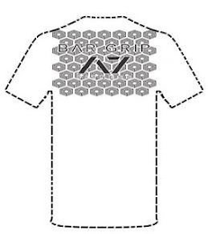 - DM0000: The mark consists of a two-dimensional design comprising the elements "BAR GRIP" and "A7" wherein the "A" is stylized as an inverted "V" each superimposed on a honeycomb pattern of repeating adjacent hexagonal shapes; the broken outline merely shows the location of the mark on a shirt.
