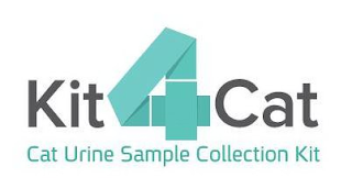 DM0000: The mark consists of the literal element, "KIT" in gray, followed by "4" in green, and "CAT" in gray. The literal element "4" contains a cross. Below is the literal element "CAT URINE SAMPLE COLLECTION KIT" in green. The background of the mark is negative space.