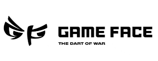 DM0000: The mark consists of a design element comprised of a stylized face featuring eyes, eyebrows, and a nose, appearing to the left of the words "GAME FACE" in stylized, upper case letters. The words "THE DART OF WAR" appear below "GAME FACE" in smaller, stylized upper case letters.