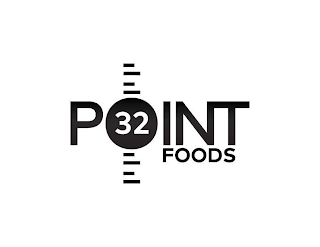 - DM0000: The mark consists of the word POINT with the number 32 within the letter "O". There are 4 stacked horizontal lines of varied lengths above and below the letter "O" and the term "Foods" is below the letters "INT" of the word POINT.