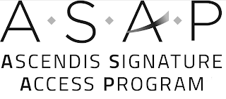 DM0000: The mark consists of the stylized wording "ASAP", with small diamonds between the letters, and the stylized wording "ASCENDIS SIGNATURE ACCESS PROGRAM" underneath.