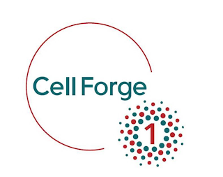 - DM0000: The mark consists of the number 1 written in red within a circle made of red and green polka dots which overlaps a red circle containing the words "Cell Forge" written in green.