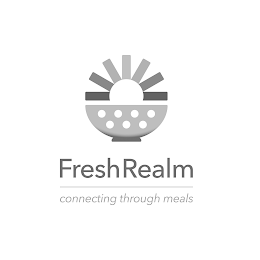 DM0000: The mark consists of a design of a sunburst above a design of a colander with the stylized wording "FRESHREALM" beneath the colander. Beneath the wording "FRESHREALM" is a line and the stylized wording "CONNECTING THROUGH MEALS".