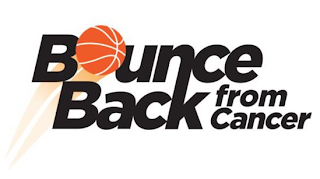 - DM0000: The mark consists of the words BOUNCE BACK FROM CANCER in black stylized font. A drawing of an orange basketball with white lines forms the letter "O" in "BOUNCE". Two motion trails changing from light orange to white extend from behind the basketball and through the "B" in "BOUNCE" and the "B" in "BACK". The letter "N" in "BOUNCE" extends downward to form the letter "K" in "BACK".