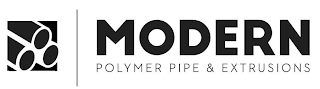 DM0000: The mark consists of a square box with the outline of three pipes forming a triangle to the left of a vertical line with the words "MODERN" above "POLYMER PIPE & EXTRUSIONS" on the right side of the line.