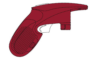 - DM0000: The mark consists of the color red applied to the entire surface of an electromechanical device. The color is not applied to the trigger of the electromechanical device. The dotted outline of the goods is intended to show the position of the mark on an electromechanical device and is not part of the mark. The color red is a feature of the mark.