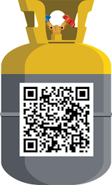 - DM0000: The mark consists of a gray refrigerant recovery cylinder with a yellow top and protective collar. In the center of the collar is a gold valve with red and blue knobs and two black discharge holes. A white and black QR code is centered on the front of the canister. The remaining white is not claimed as a feature of the mark and merely serves as background.