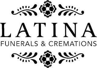 DM0000: The mark consists of the word LATINA in stylized letters above the words FUNERALS & CREMATIONS, with a garland of flowers and fronds above the word LATINA and below the words FUNERALS & CREMATIONS.