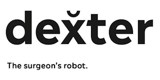 DM0000: The mark consists of the stylized wording "DEXTER THE SURGEON'S ROBOT", with a caron mark above the letter "X".