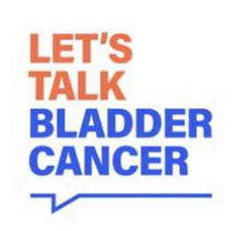 DM0000: The mark consists of the stylized and stacked words LET'S TALK in orange above the stylized and stacked words BLADDER CANCER in blue all above a blue line with an abstract divit towards the left edge.