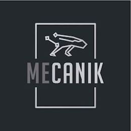 - DM0000: The mark consists of the stylized wording "MECANIK" intersecting a rectangular border and featured underneath a stylized design of a small mammal.