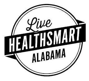 - DM0000: The mark consists of a ribbon at a slight upward angle crossing two concentric circles, with the word LIVE in cursive above the ribbon, the word HEALTHSMART in uppercase block letters across the ribbon, and the word ALABAMA in smaller uppercase block letters below the ribbon.