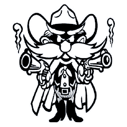 - DM0000: The mark consists of a caricature of a cowboy having a bushy mustache and eyebrows, a large cowboy hat, cowboy boots, and holding two handguns in a shooting position.