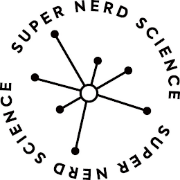 DM0000: The mark consists of the stylized wording "SUPER NERD SCIENCE" duplicated and forming a circle. In the center of the circle formed by the wording is a design comprised of a circle having a number of radial lines extending therefrom where each radial line has a ball at one end.