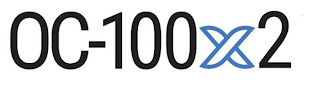 - DM0000: The mark consists of the literal element "OC-100", with the letter "X" depicted as a blue outline in a stylized form followed by the number "2". All other elements appear in black. The color white indicates transparent matter and is not claimed as a feature of the mark.