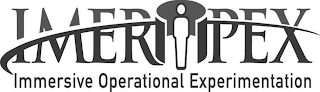 DM0000: The mark consists of the letters "IMEROPEX" with an arc cutting through the letters; the "O" in "IMEROPEX" is designed to resemble a round structure with the silhouette of a person in the middle; all centered over the words "IMMERSIVE OPERATIONAL EXPERIMENTATION".
