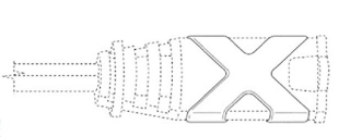 - DM0000: The mark consists of a three-dimensional configuration of an X design on a connector at the end of a cable. The matter depicted in dotted lines is used to show the position of the mark and is not claimed as a feature of the mark.