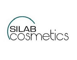 - DM0000: The mark consists of the stylized word "SILAB" in black, with the stylized word "COSMETICS" in black underneath. A half-circle in green begins at the letter "C" of "COSMETICS" and ends at the letter "B" of "SILAB". The color white represents background or transparent areas and is not claimed as a feature of the mark.