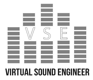 DM0000: The mark consists of rectangles stacked on top of each other in five individual columns with varying heights with the letter "V" located in the center of the second column, "S" located in the center of the third column, and "E" located in the center of the fourth column above the phrase VIRTUAL SOUND ENGINEER.
