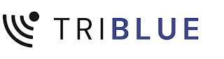 - DM0000: The mark consists of a white wireless signal design. To the right is a space, followed horizontally by the three capital letters "TRI" in white in sequence followed directly by the capital letters "BLUE" in blue. The gray color in the mark represents background and/or transparent areas and is not claimed as a feature of the mark.