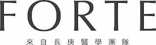- DM0000: The mark consists of the word "FORTE" in oversized stylized font, centrally placed above eight Chinese characters in smaller sized stylized font.
