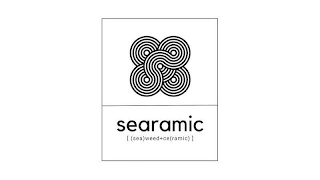 DM0000: The mark consists of two boxes stacked on top of each other. The top box is shaped like a square and the bottom is a rectangle. In the top box there is an emblem made of loops that form five circles and all five of the circles have six lines in them which forms overlapping loops. The bottom box contains the word "SEARAMIC" and directly under it has the phrase: "[ (SEA)WEED)+CE(RAMIC) ]".