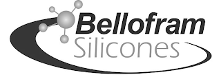 - DM0000: The mark consists of the stylized wording "BELLOFRAM" above the stylized wording "SILICONES". A stylized curved line starts at the end of "SILICONES" and extends to the left of "BELLOFRAM". At the end of the line is a stylized depiction of a molecule formed by five spheres connected by lines.