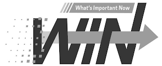 - DM0000: The mark consists of three slanted vertical lines and a small rectangle. Within the small rectangle are the words "What's Important Now". Below the small rectangle are squares in varying sizes and the word "WIN". A portion of the squares are superimposed on the letter "W" in the word "WIN". Through the middle of the word "WIN" is an arrow pointing towards the right.