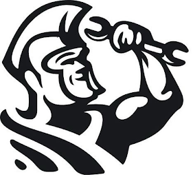 - DM0000: The mark consists of a stylized image of a warrior in a crested helmet holding a wrench in a lifted fist with stylized lines representing a draped cape.