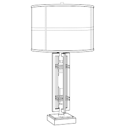 - DM0000: The mark consists of a three-dimensional lamp comprising: (1) a base formed with two squares of different sizes, wherein the upper square's height and width is less than the lower square's height and width, and the upper square is centered upon, and in the same orientation as the lower square; (2) a body portion formed by two intersecting, orthogonal rectangles extending from just above the base to just below the shade, with a socket for a light bulb located interior to and just below the top of the intersecting rectangles, configured such that the light bulb extends downward; (3) two pairs of parallel square rings, with the first pair being located approximately a quarter of the distance from the body top, and the second pair being located approximately a quarter of the distance from the body bottom The broken lines depicting the top nut, the cylindrical lampshade, the light bulb socket and the light bulb indicate the placement of the mark on the goods and are not part of the mark.