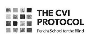 DM0000: The mark consists of 16 squares, arranged into a single square to the right of the wording THE CVI PROTOCOL PERKINS SCHOOL FOR THE BLIND. The wording CVI PROTOCOL is above the wording PERKINS SCHOOL FOR THE BLIND.