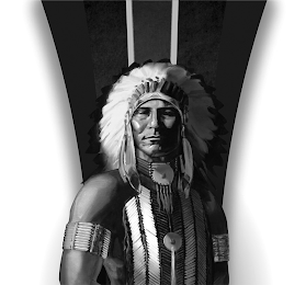 - DM0000: The mark consists of the head and upper body of a Native American with a headdress and ornamentation centered in front of a configuration of stripes curving outward.