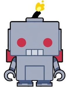 - DM0000: The mark consists of a grey robot, having red eyes and light grey teeth, with grey and dark grey stripes on its arms and legs, red panels behind its shoulders and a black fuse with a yellow flame on top of its head, said yellow flame being outlined in a darker yellow.