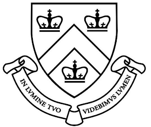 DM0000: The mark consists of the design of a shield containing three crowns and an inverted chevron over a ribbon containing the words, "IN LUMINE TUO VIDEBIMUS LUMEN".