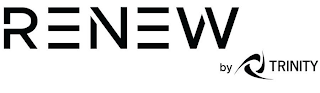 - DM0000: The mark consists of the wording "RENEW" with each letter E resembling 3 horizontal lines with the wording "BY" below the letter W followed by three stylized curved lines forming a triangular shape followed by the wording "TRINITY".