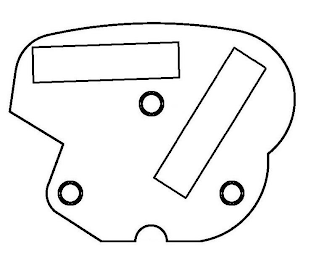 - DM0000: The mark consists of The mark consists of a three-dimensional configuration comprising a metal disc configuration having one long curved and tapering side, one angled side with a V-shaped cutout and a lower curved side with a notch, with one circle in the center, a second circle below the V-shaped cutout and a third circle at the lower end of the curved and tapering side, a horizontal rectangle in the upper left and a rectangle slanted from the upper right towards the notch.