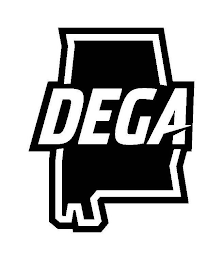 - DM0000: The mark consists of the word DEGA within the outline shape of the state of Alabama.