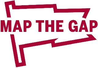 - DM0000: The mark consists of the red stylized wording "MAP THE GAP" superimposed on a red outline of a flag on a red flagpole. The color white in the mark represents background and is not part of the mark.