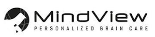 DM0000: The mark consists of "MINDVIEW PERSONALIZED BRAIN CARE" in stylized letters next to a circle having curved lines inside the circle within which is the silhouette of a man in a thinking position.