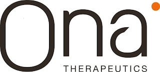 - DM0000: The mark consists of the following: the word "ONA" in stylized black font. To the right of the word "ONA" is an orange dot. Below the word "ONA" is the word "THERAPEUTICS" in stylized black font. The color white represents background or transparent areas only and is not claimed as a feature of the mark.