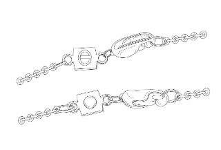 - DM0000: The mark consists of the simple square shape disc before the jewelry clasp with the stylized signature lowercase "e" on one side and the back view includes in the center of that square shape is a round jeweled center.
