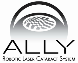 DM0000: The mark consists of a fading horizontal oval with a transparent crescent cutout along the top and a smaller transparent oval containing a stylized checkered design in the center, the larger oval fading into the stylized literal element "ALLY" in capital letters, above the literal element "ROBOTIC LASER CATARACT SYSTEM" in small capital letters. The white areas including the "transparent" areas are background and not claimed as a feature of the mark..