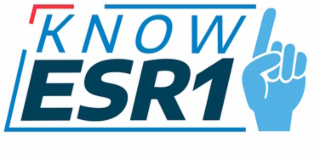 - DM0000: The mark consists of the designation "KNOW" in light blue above the designation "ESR1" in blue, all outlined in light blue, except for the upper left corner which is outlined in red, all to the left of a stylized hand in light blue with the index finger pointed upward and the thumb folded over the third, fourth, and fifth fingers.