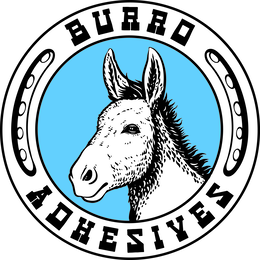 - DM0000: The mark consists of The mark consists of a black border with horseshoe design following a circle with the words BURRO ADHESIVES. Inside circle has a blue background with a black burro.