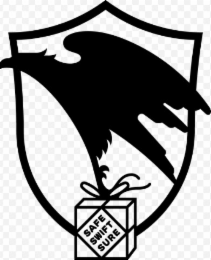 - DM0000: The mark consists of a left-facing eagle superimposed on a stylized shield design. The eagle is holding a square box with a label that says "SAFE SWIFT SURE".