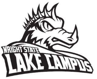 - DM0000: The mark consists of a lake dragon head with pointed nose and spikes extending from the top of the head all the way down to the dragon heads neck; the words WRIGHT STATE in block letters underneath the back half of the lake dragon where the words LAKE CAMPUS are directly under the entirety of the words WRIGHT STATE and the lake dragon.