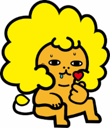 - DM0000: The mark consists of a stylized lion-like character with a large, fluffy yellow mane. The lion has an orange body and is depicted sitting down. The character has a small black tail with a yellow tip and is holding a red heart-shaped object in its left hand. The lion's facial expression includes drooping eyes depicted in the colors white and black, and a small blue droplet coming from its mouth, which is depicted in the color black. The overall design is outlined in black.