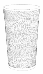 - DM0000: The mark consists of a three-dimensional configuration comprising the design of a cup having an exterior surface with a three-dimensional wave pattern. The lines depicting the wave pattern indicate the shape of the mark. The broken lines on the goods indicate the top and bottom surface of the cup and are not part of the mark.