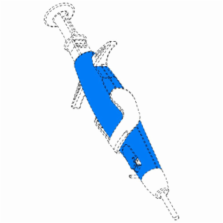 - DM0000: The mark consists of a medical device with the color blue on the body of the device. The dotted lines are intended to show the position of the mark and are not part of the mark as shown. The broken lines are provided to show placement and are not claimed as part of the mark.